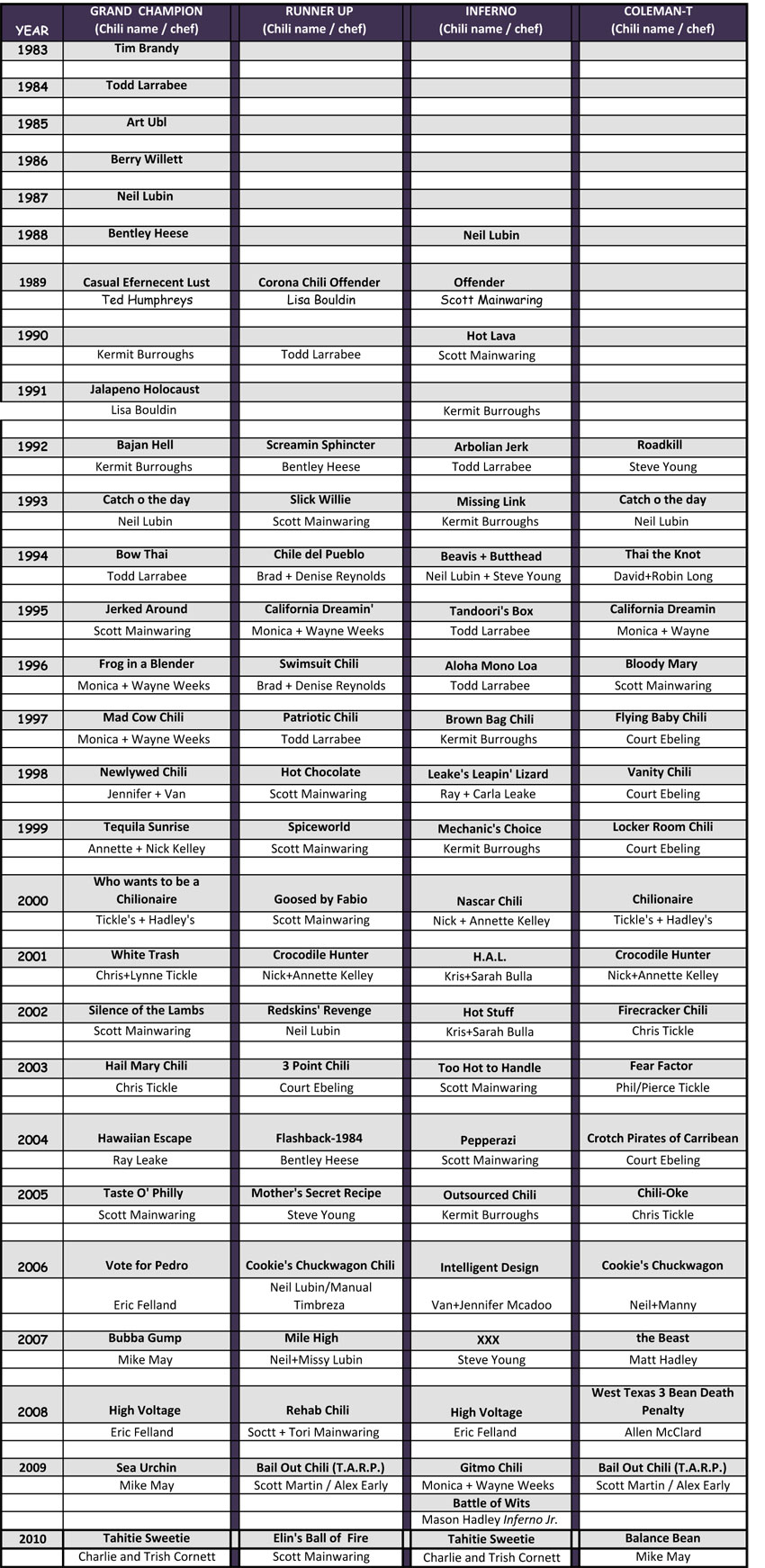 Those winning chefs and their chilis: